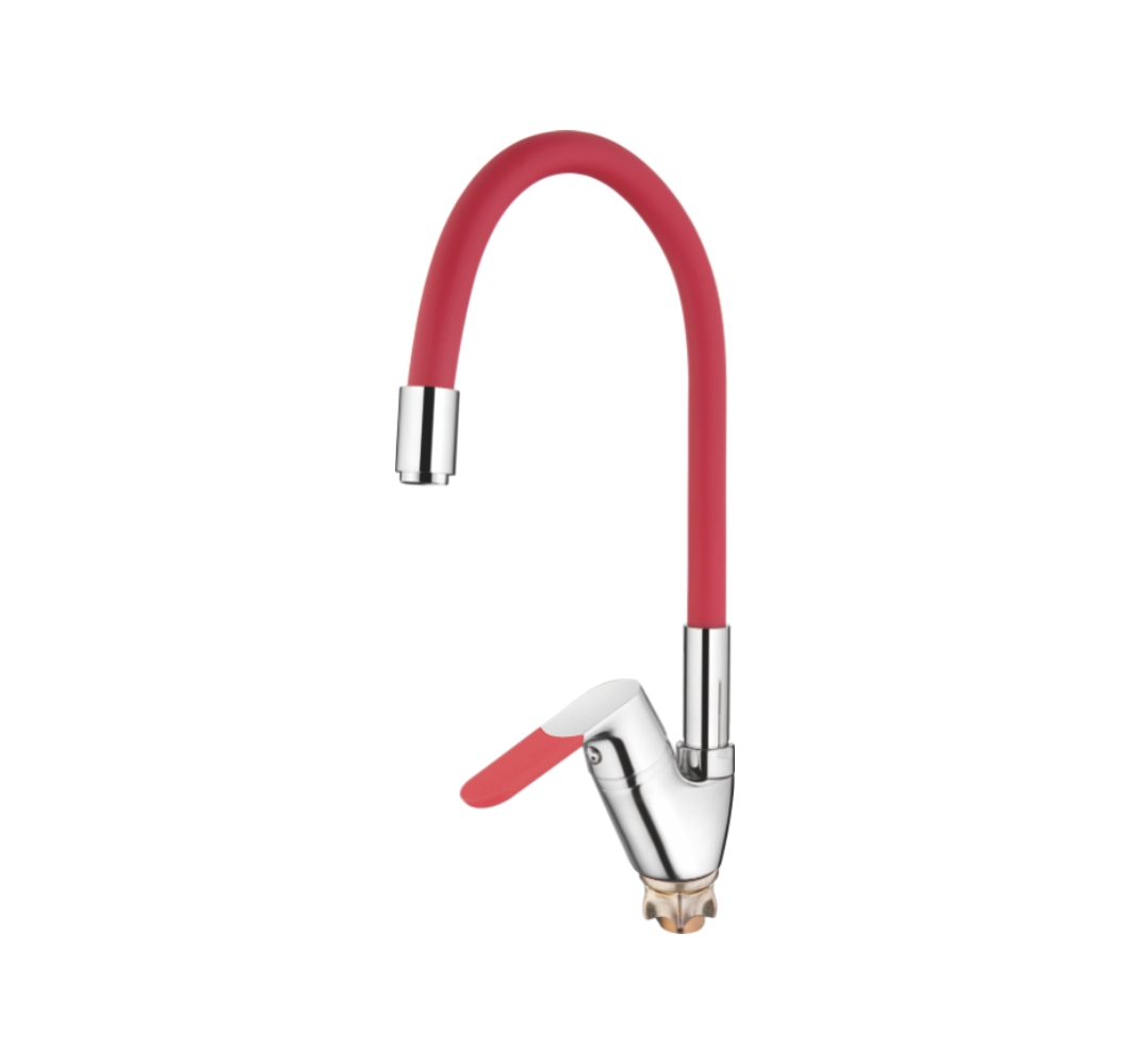 Смеситель кухня силиконовый излив (35) Латунь Красный+Хром Accoona A4819N