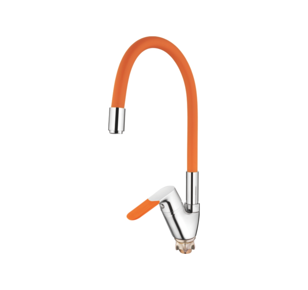Смеситель для кухни Accoona A4819P - стильный и функциональный выбор для вашей кухни. Изготовленный из латуни, этот смеситель обеспечивает прочность и долговечность, а двухцветное покрытие из хрома и оранжевого придает ему современный и яркий вид.Однорычажное управление и гибкий поворотный излив обеспечивают удобство и комфорт в использовании. Аэратор на изливе позволяет экономить воду и делает струю более мягкой и равномерной.