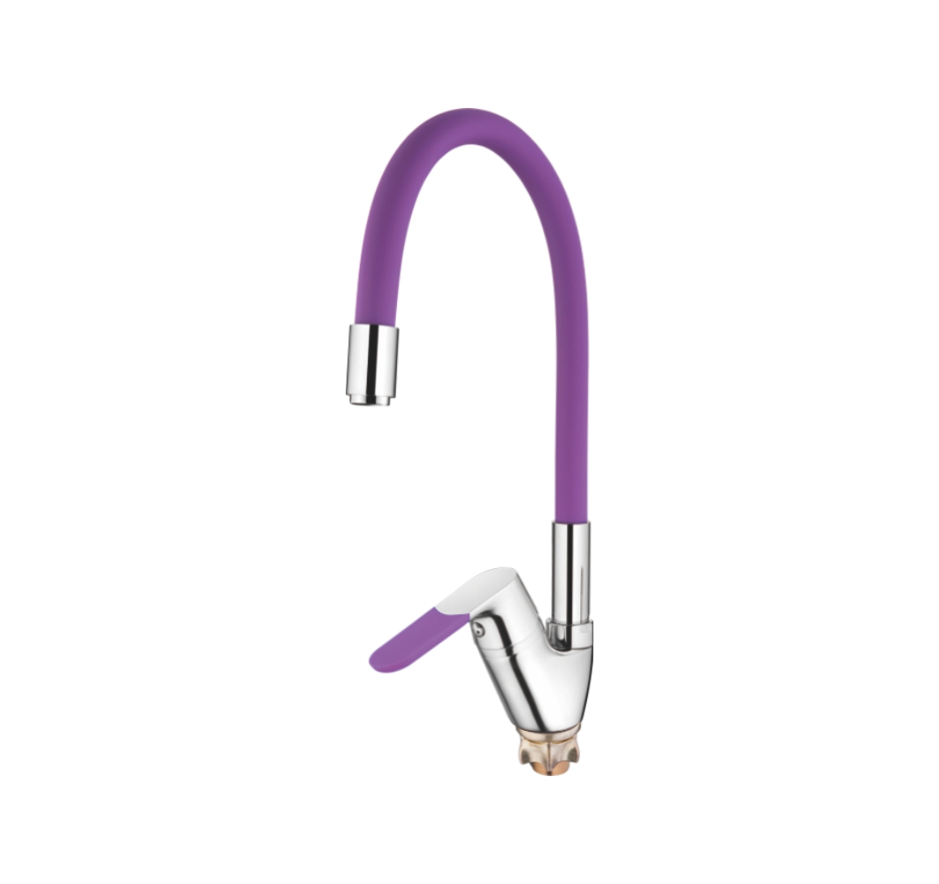 Смеситель кухня силиконовый излив (35) Латунь Фиолетовый+Хром Accoona A4819S