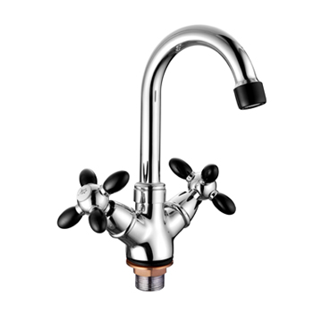Смеситель для раковины барашки крест с поворотным изливом Черный Хром Accoona A9482F