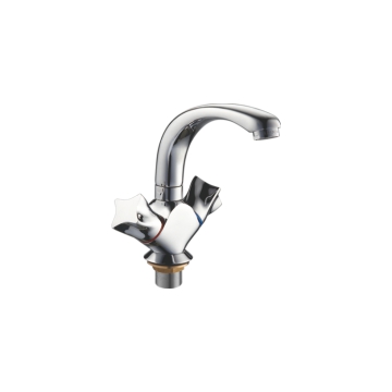 Смеситель раковина на гайке ручки поворотный излив Силумин Accoona A89473