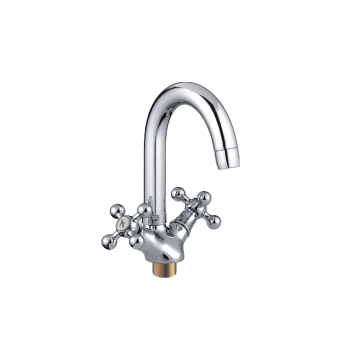 Смеситель раковина на гайке крест поворотный круглый излив Силумин Accoona A9671