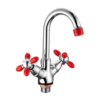 Смеситель раковина на гайке крест поворотный излив Силумин Красный+Хром Accoona A9482N