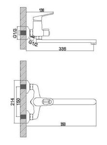 Смеситель ванна прямой нос 30 см (35) дивертор в корпусе Силумин Accoona A87150 (АС1)