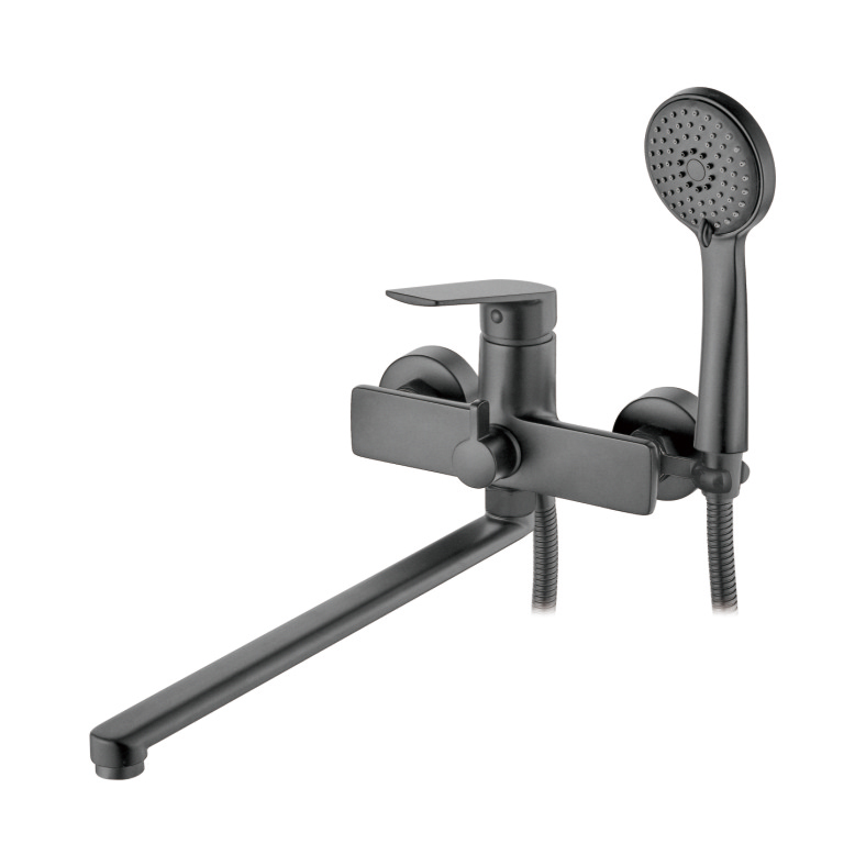 ? Смеситель для ванной с душевой лейкой, имеет устойчивое матовое покрытие, защищающее поверхность от воздействия агрессивных моющих средств и предотвращающее появления разводов и пятен.