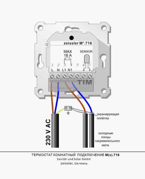 Терморегулятор механический c датчиком водяного теплого пола 220В/16А (3м.) M5.716 ТИМ