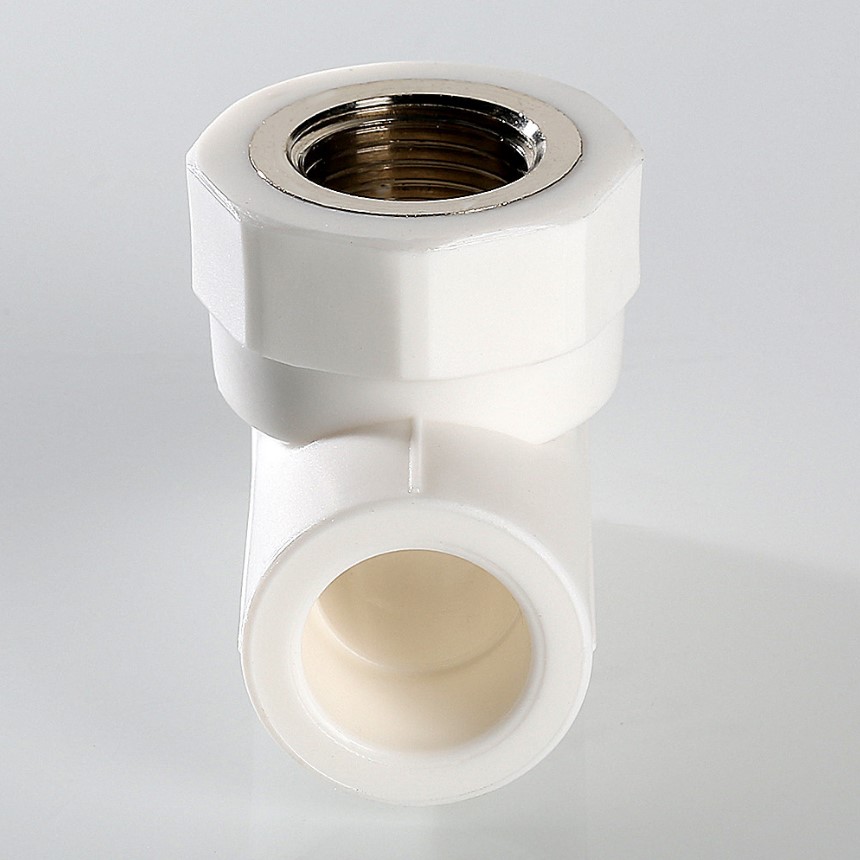 Тройник внутренняя резьба(VTp.732.0) Трехсторонний металлопластиковый фитинг для подсоединения к полипропиленовому трубопроводу компонента инженерной системы с резьбовым подключением. Резьба фитинга – наружная трубная по ГОСТу 6357.
