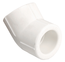 (VTp.759.0) Двухсторонний угловой полипропиленовый фитинг (отвод), позволяющий изменить направление полипропиленового трубопровода на 45°. Монтаж осуществляется методом раструбной сварки.Наличие