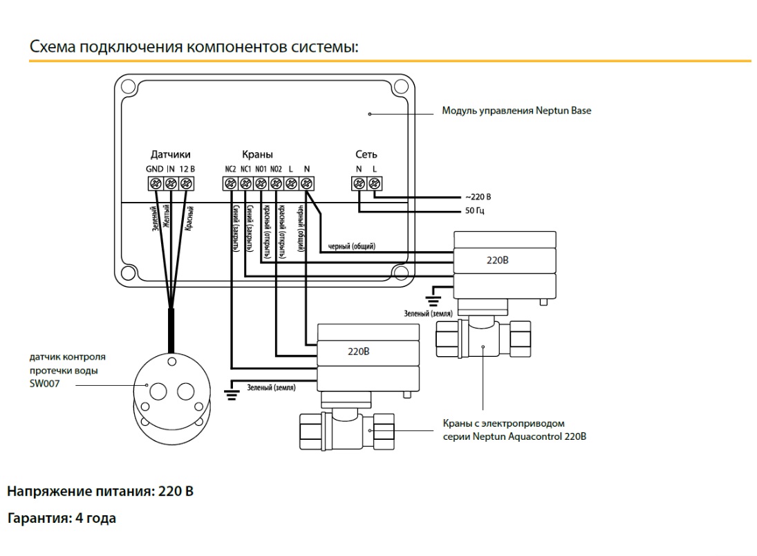 Система контроля протечки воды Neptun Aquacontrol предназначена для своевременного обнаружения и локализации протечек воды в системе водоснабжения и отопления жилых домов, коттеджей, офисных зданий, магазинов.Система заблокирует подачу воды до устранения причин протечки и проинформирует о возникшей аварии звуковым и световым сигналами.