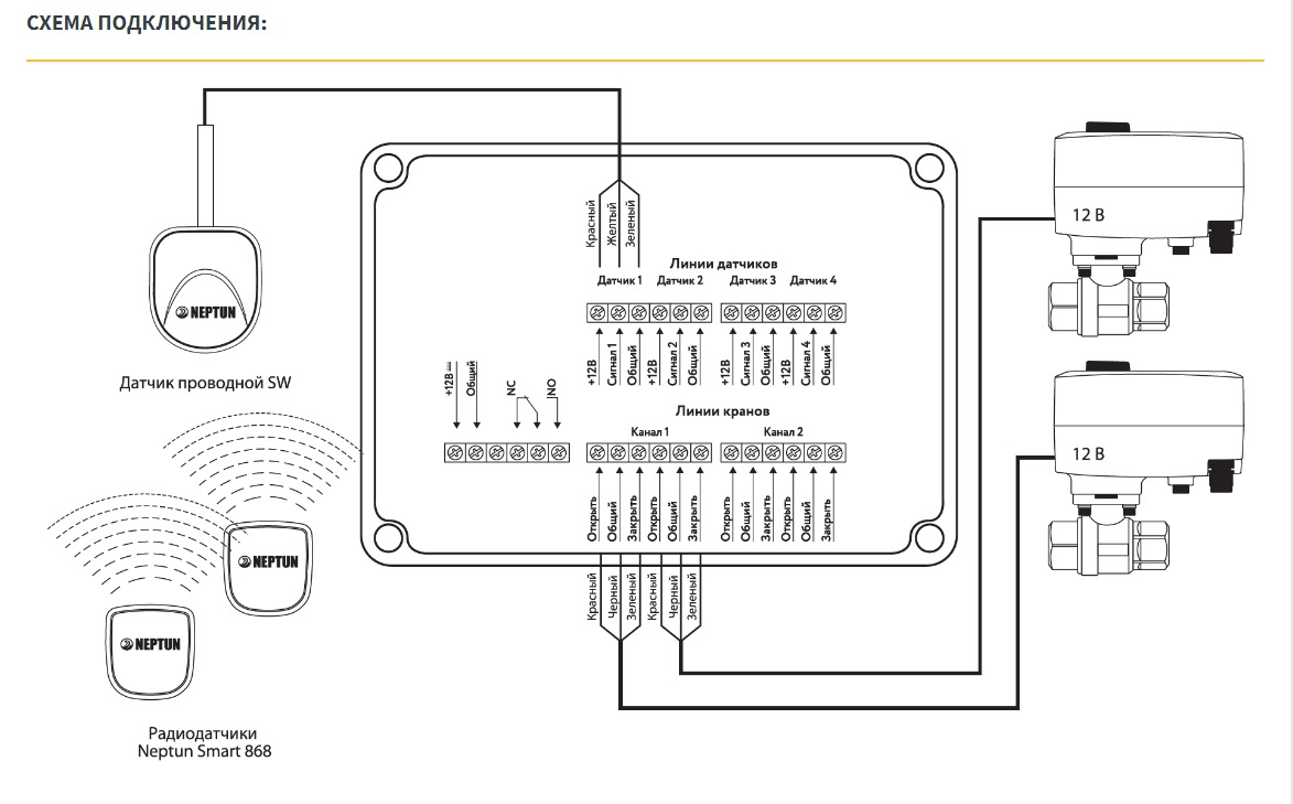 Умная система защиты от протечки воды Neptun PROFI Smart+ предназначена для обнаружения и локализации протечек воды в системах водоснабжения.Компоненты системы связаны и взаимодействуют друг с другом через центральный контроллер (модуль управления Neptun Smart+), который может быть укомплектован дополнительными платами расширения: