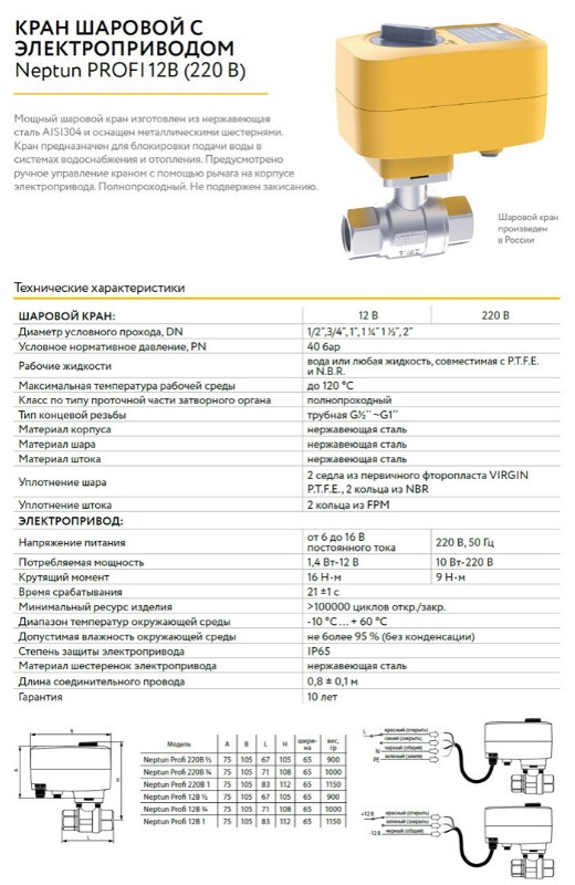 Кран шаровой с электроприводом Neptun PROFI 12В 1" нержавейка