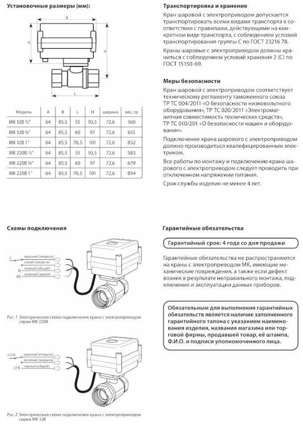 Кран предназначен для блокировки воды посредством электропривода в системах водоснабжения и отопления.Предусмотрена индикация состояния крана на корпусе электропривода.